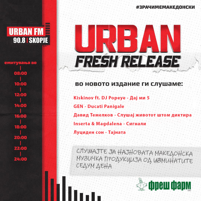 Од четврток (16.10) во етерот на Урбан ФМ можете да го слушате најновото издание на музичка рубрика Urban Fresh Release на 90.8!